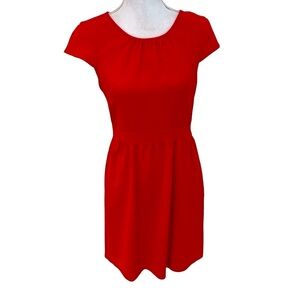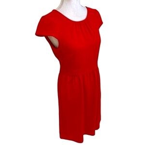 J. Crew red matte crepe cap sleeve lined dress defined waist keyhole back size 6