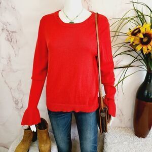 J. Crew red soft knit cotton sweater with fluted sleeves