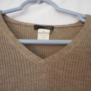J. Crew ribbed knit Brown Sweater 100% merino wool Size M V-neck