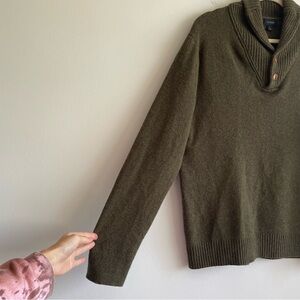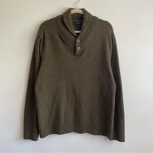 J. Crew rugged merino wool two button shawl collar pullover sweater olive green