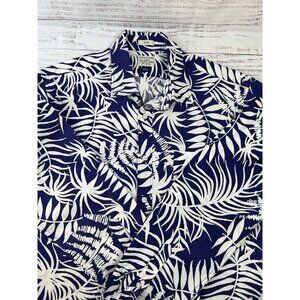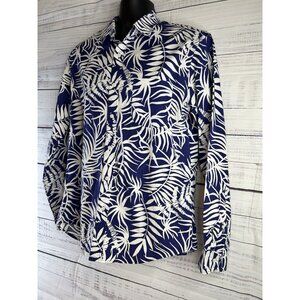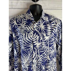 J Crew shirt Mens L Blue Floral Printed Long-Sleeve Slim Stretch Casual Tropical