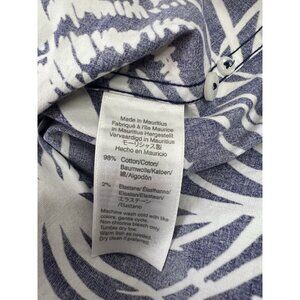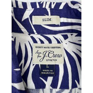 This J.CREW men's shirt in size L features a blue floral print with a tropical theme, perfect for a casual or travel outfit. The slim fit design with long sleeves and a collared neckline offers a stylish and comfortable look. Made of stretch fabric, this button-up shirt is machine washable and suitable for the Spring and Summer seasons, ideal for outdoor or classic preppy styles.