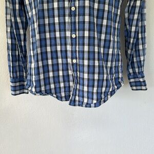 J. Crew shirtings washed casual tailored fit blue plaid print 100% cotton button down dress shirt size small