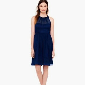 J. Crew silk chiffon crepe fairy sleveless lined button & zip closure navy 10