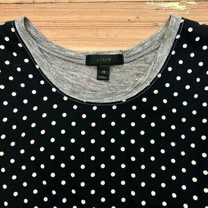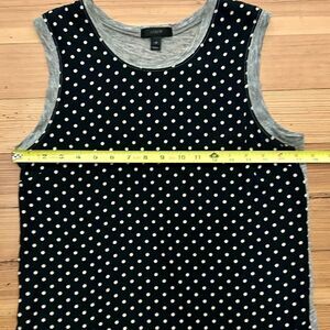 J. Crew silk & linen Polka dot sleeveless blouse. Size XS. Black silk front with ivory/ white polka dots, heathered grey linen jersey. Great for layering or solo.
