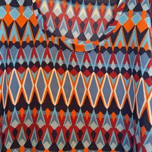 Worn once, super classy colors- great with jeans or even dressed up with slacks. Vibrant, yet understated colors. Size is 00.