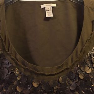 Short sleeve, olive green, sequin appliqué on front, very unique and cute top!