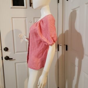 J. Crew size 2 Linen raw fiber button up All measurements are approximate and taken lying flat pit to pit 17" shoulder to hemline 22" A28