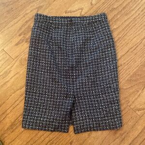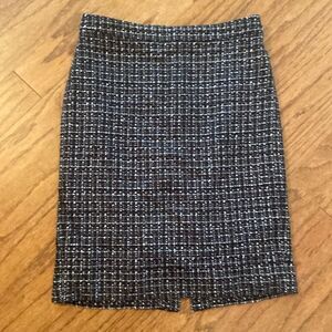 J Crew size 2, black and white and gray skirt lined with a slit in the back