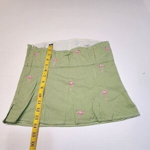 J Crew size 4 bandeau top green gingham pink flamingo embroidery