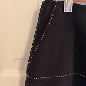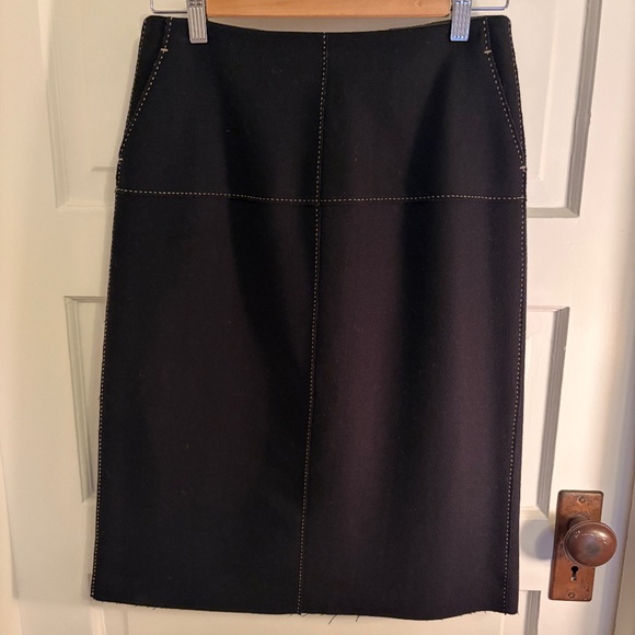Super cute black pencil skirt by J Crew. I wish it fit me. The shell is wool and nylon, the lining is acetate. Very slimming, beautiful skirt.