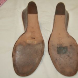 These J Crew slide shoes were made in italy with Leather upper & sock. The wedge sides are made of embossed leather and have a single strap with buckle. I only wore them a few times for special occasions and are in excellent condition showing no signs of wear except for the sole.