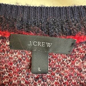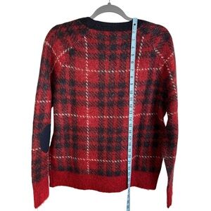 J Crew size Large Red Plaid Wool Mohair Crewneck Sweater Elbow Patches Pullover