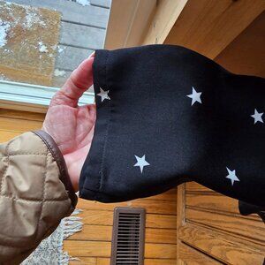 Popover style blouse from J Crew in size Large. Excellent condition. V neck. Black background with white stars.
