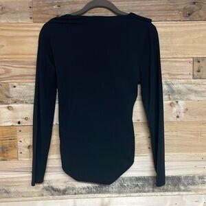 J. Crew size Small Black Ruffled Wrap Soft & Stretchy Bodysuit with Snap Closure