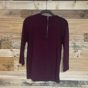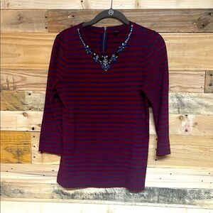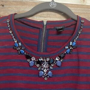 J. Crew size Small Red and Blue Striped Jeweled Crew Neckline Long Sleeve Blouse