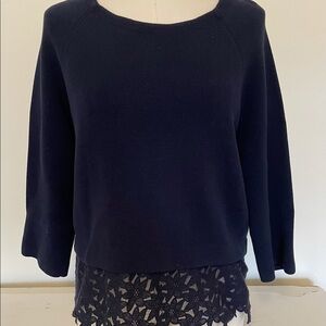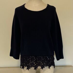 💙 J Crew size Small navy sweater 100% cotton, lace panel. Perfect condition Blue