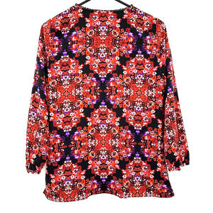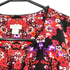 J. Crew size XS lace lined long sleeve floral print blouse red purple pink white