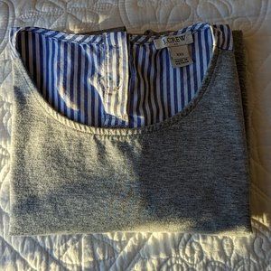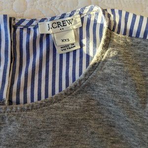 Adorable J Crew sleeveless blue & white blouse with a soft lining in contrast pale grey. Size is XXS but I wear a XS and tried it on and it fit. (bust 33B) Back has small buttons for closure. The hem in the back is a little longer than the front. Excellent condition. Perfect for Spring/Summer with jean shorts, white or blue jeans, skirts...