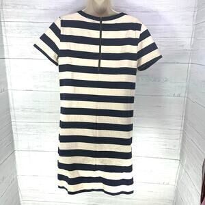 J. Crew small navy blue cream stripe mini t shirt dress nautical sailor twee
