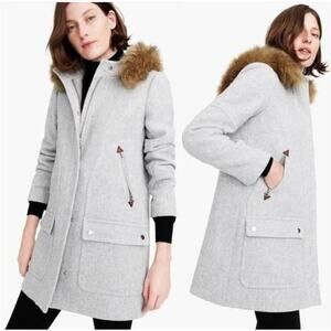 J. Crew stadium Cloth Gray Faux Fur Trim Coat
