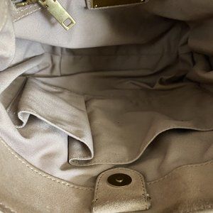 J Crew handbag creme leather and straw medium shoulder bag- V. Good condition.On trend shoulder bag for Spring/Summer. Creme leather trim and should strap. Woven straw and creme exterior- creme colored fabric interior. No stains, scratches or blemishes inside or out. Brass buckle hardware is in great condition. Slight darkening of tan suede trim on top of inside lining. Bag measures 10 inches wide and 9.5 inches high. Single rounded leather shoulder strap has 9 inch drop. Inner pockets: one zippered and two open pockets. Really cute, light, versatile summer bag (and big enough to hold your larger wallet, sunglasses, phone and a few extras.