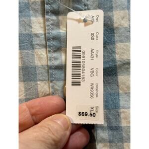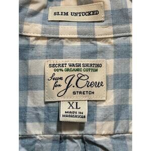 New with tags men’s J Crew stretch slim fit untucked button up shirt. 98% organic cotton, blue and white plaid. Size Xl… pit-pit 22.5”, length 29.5”, shoulder to wrist 26”