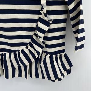 J. Crew striped scoop neck asymmetrical ruffle peplum hem 3/4 sleeve top sz XS