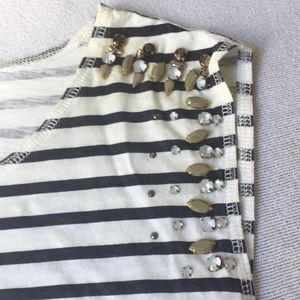 Blue & white striped tank with rhinestone embellished sleeves.