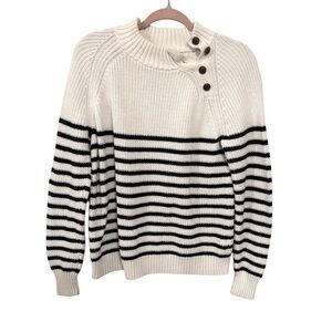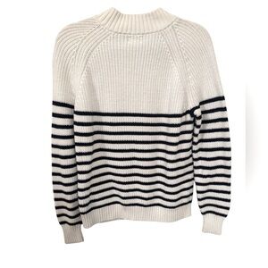 J. Crew stripped cotton button mock neck sweater blue and white. In very good condition. Size small.