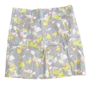 J. Crew Stretch Gray Yellow watercolor Printed Cotton Sateen Mini Skirt