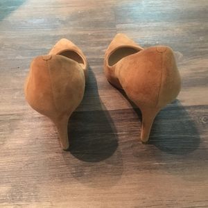 J. Crew suede heels, brown, 8, worn once, small mark on one toe and heel (both shown in photos)