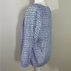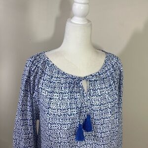 J. Crew sz med top, tunic boho style. Blue stripe Tie at the neckline.