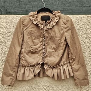 J. Crew tan khaki ruffle trim chino jacket size 2