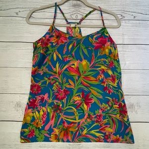 J. Crew tank top, tropical floral print, multicolor, EUC