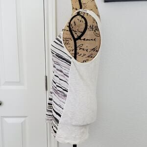 Racerback. Abstract stripes accented with sequins. Chest 17". Length 27". MEASUREMENTS ARE APPROXIMATE. 12CC