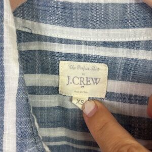 J. Crew the Perfect Shirt Blue White Striped Button Down Shirt 100% Cotton Sz XS