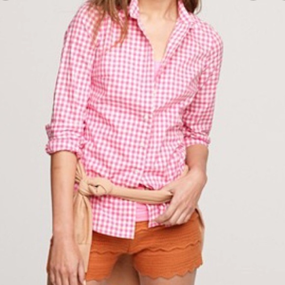 The Perfect Shirt by J Crew. 💯% cotton. Pretty pink and white EUC shirt. Size 8.