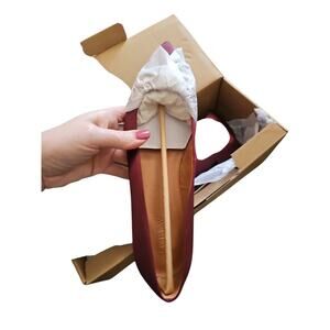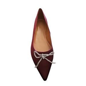These elegant flats are a perfect addition to any wardrobe. The rich burgundy color is sure to complement a variety of outfits. A delicate bow adds a touch of feminine charm. They arrive in their original box, ensuring pristine condition. These comfortable and stylish flats are ready to be worn.