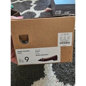 J. Crew warm burgundy point toe flats with bow new in box $128