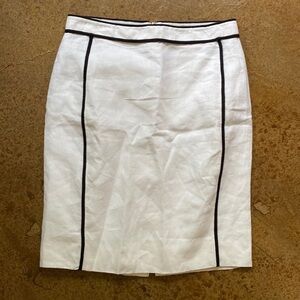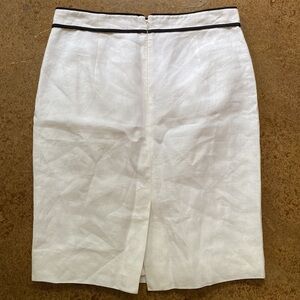 J. Crew white and black linen lined pencil skirt. Size 2, linen, back kick pleat, see pictures for details.