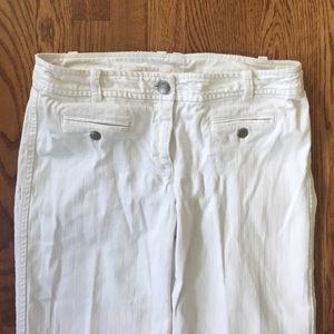 Just in time for summer! These soft, white denim jeans are "Cityfit". They have a trowser style cut which looks perfect with heels. 99% cotton, 1% Lycra spandex.