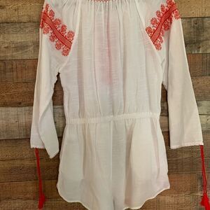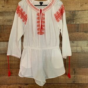 J. Crew white shorts romper orange embroidery long sleeve size small