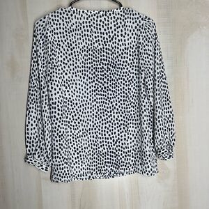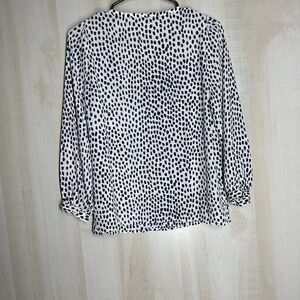 J. Crew white black blue v neck blouse top long sleeve, size 00 petite