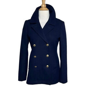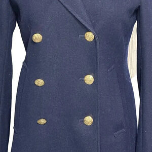 J. Crew women's 0 peacoat Navy wool blend gold crested buttons double breasted