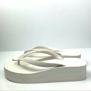 J Crew womens sandals size 9.5 white platforms vintage Y2k thong flip flops