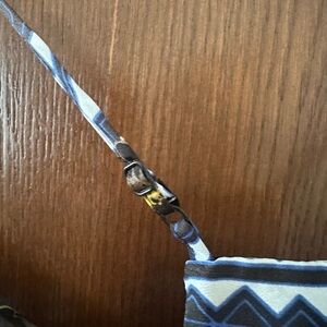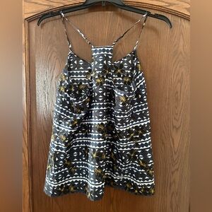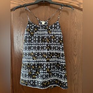 Geometric floral pattern Blue, black and yellow Adjustable straps Excellent condition.