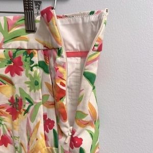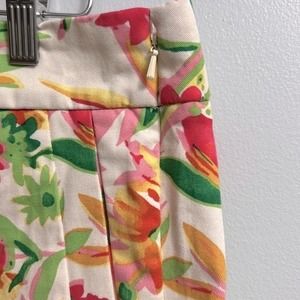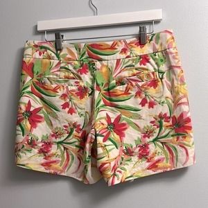 Size 6 women’s tropical flower J. Crew shorts. The is virtually no stretch to these! They dress shorts, made of 100% cotton. Zipper is on the side of the shorts and is functional. They are in good condition with no rips or stains. We are a smoke free, pet friendly home!