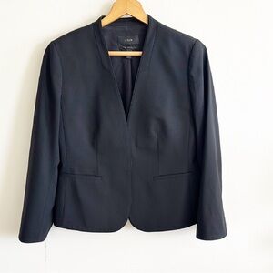 J. Crew wool Collarless Blazer Jacket in Italian Stretch Black Sz 10 Style E4776