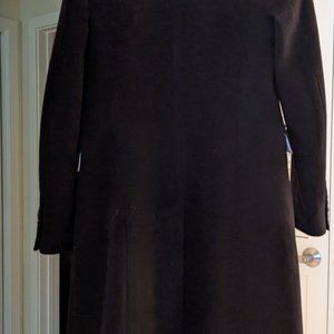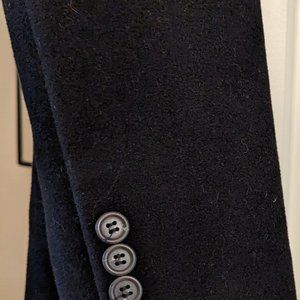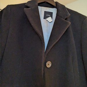 J. Crew size 4 black topcoat in Italian boiled wool. Perfect for the winter weather, clean lines and polished details, with a fit that goes from day to night. Made in a super-cozy boiled wool (translation: it's tightly woven for major warmth and less bulk. Neat, finished edges.